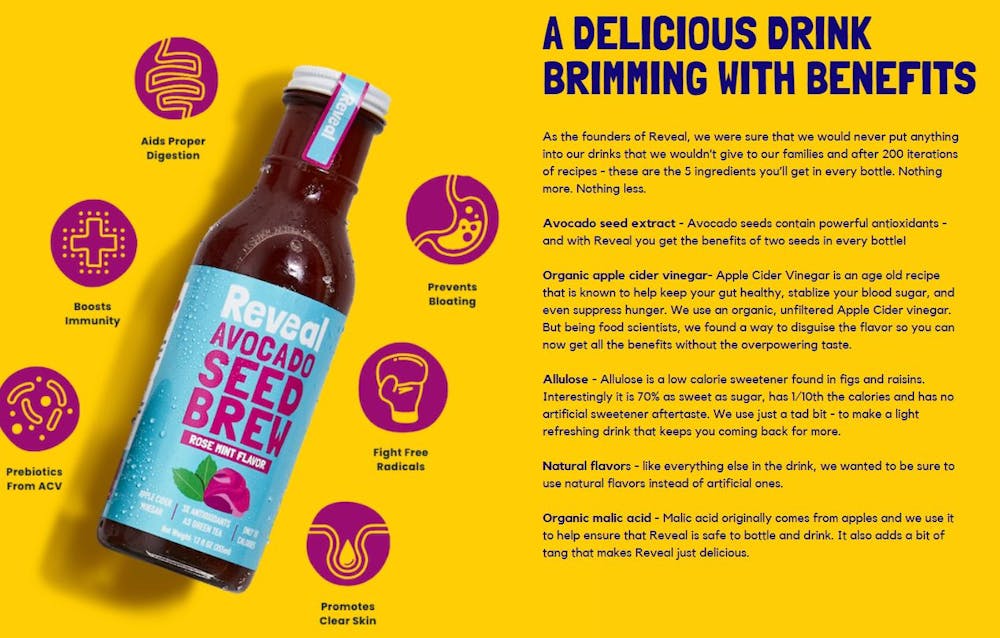 Reveal was founded by culinary scientists on a mission to change the narrative of food waste. Together, they've created a unique beverage that tastes good, feels good, and does good. Comprise of just five simple ingredients, Reveal Avocade Seed Brew drinks can aid in digestion, immunity and the promotion of clear skin (among many other things).